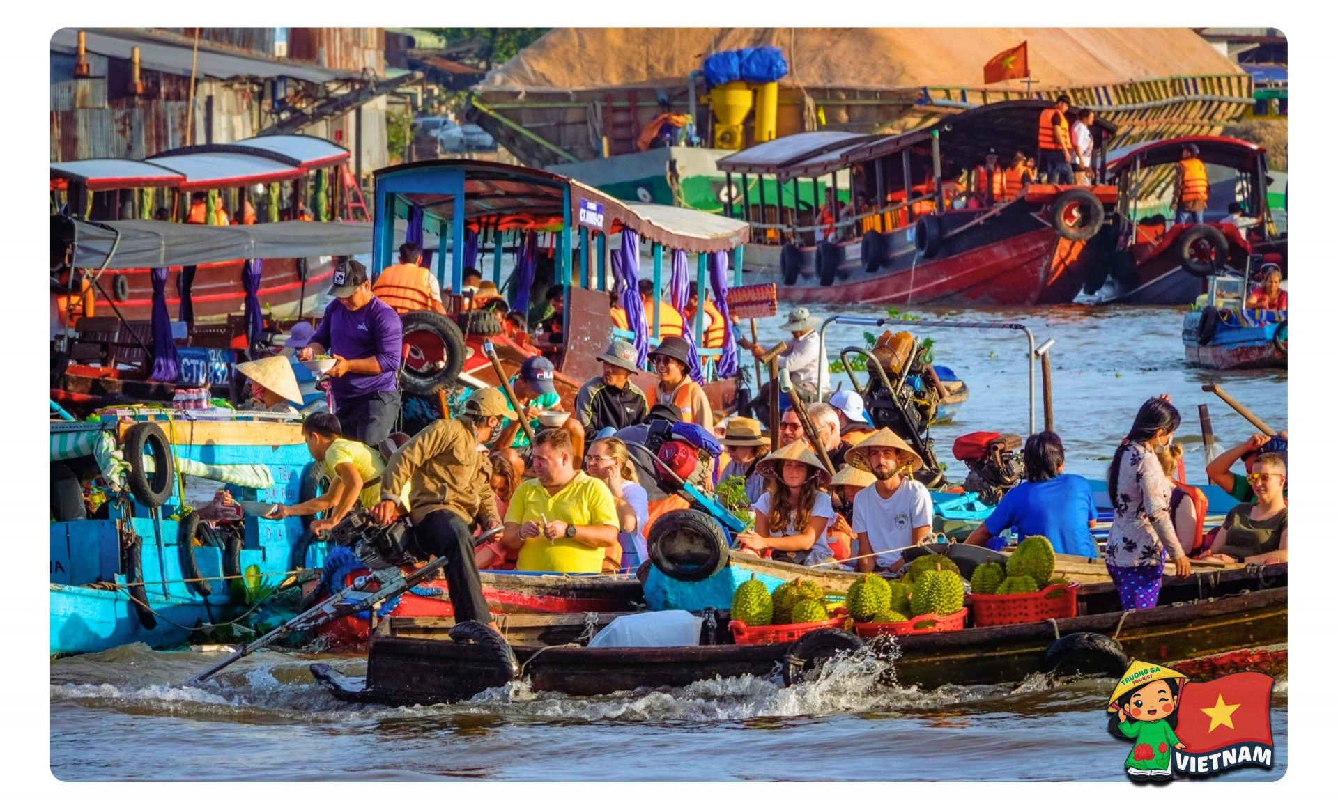 Gliding through floating markets at dawn, enjoying breakfast on the river, hearing boat engines and vendors’ calls, and buying fresh fruits creates an unforgettable experience. It reflects the river culture of generations in the Mekong Delta.
