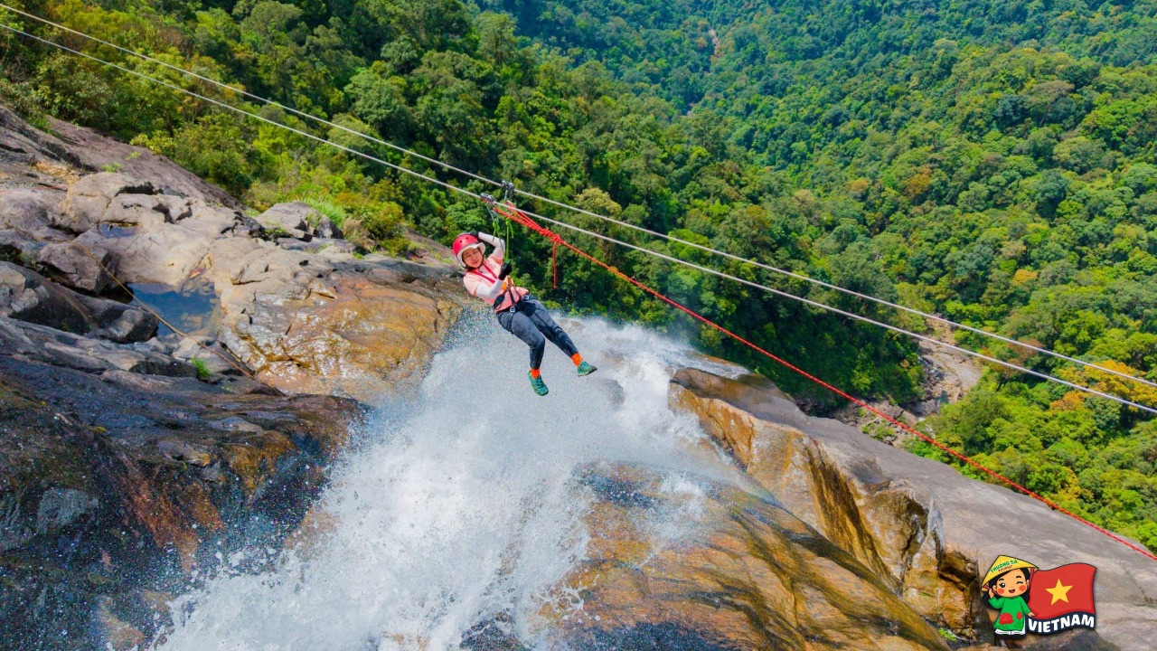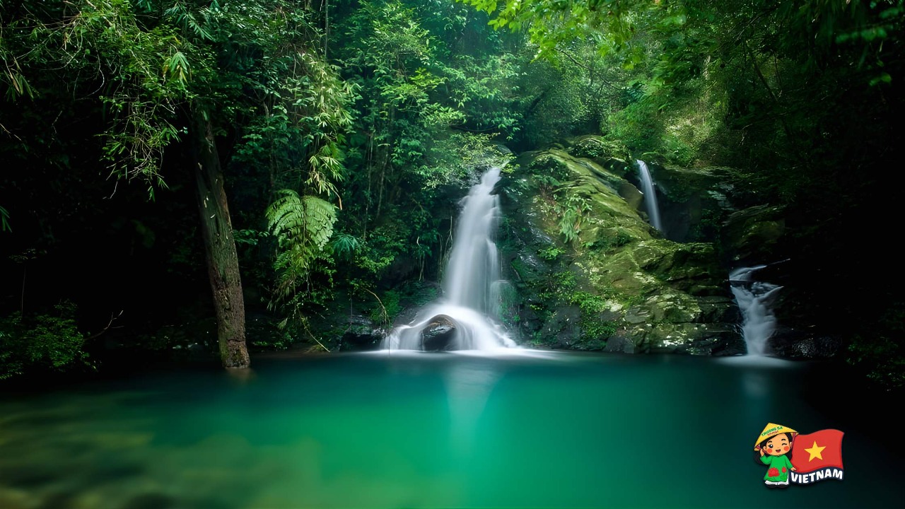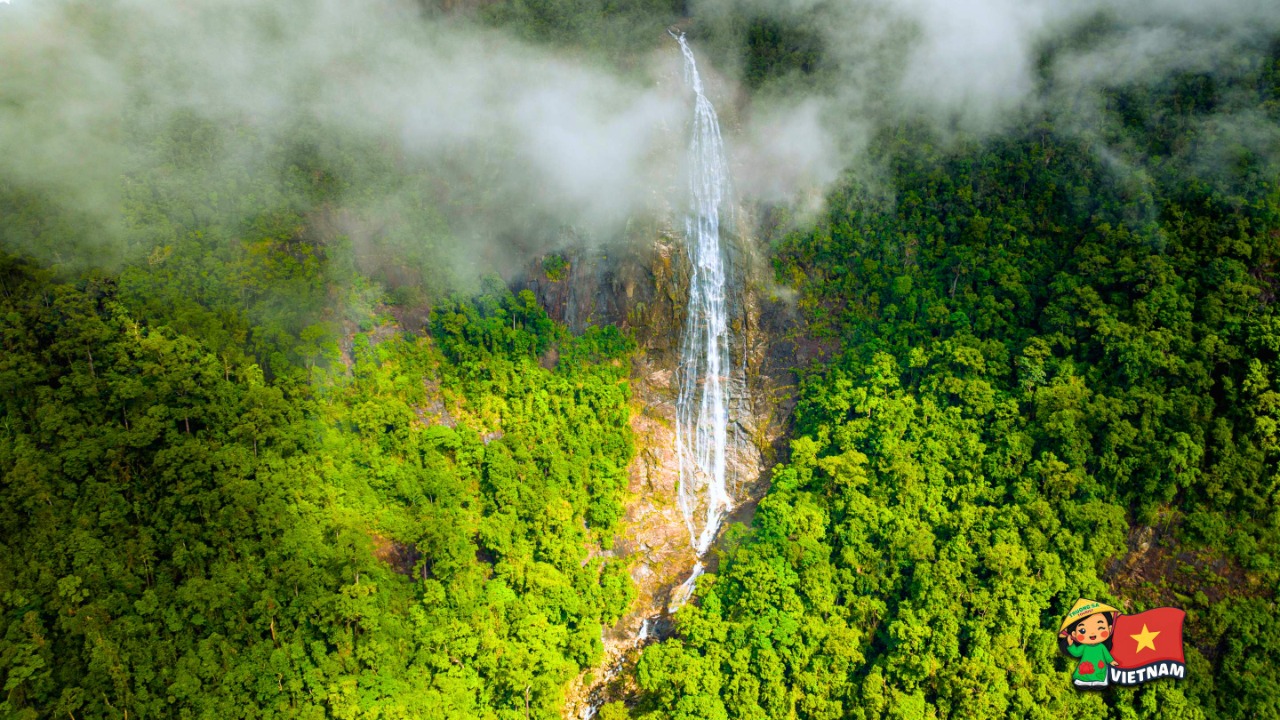 Visit Do Quyen Waterfall, a spectacular 300-meter-high cascade hidden deep in the jungle