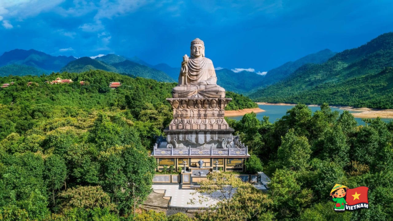 Peaceful stop at the Lady Buddha statue, surrounded by forest serenity