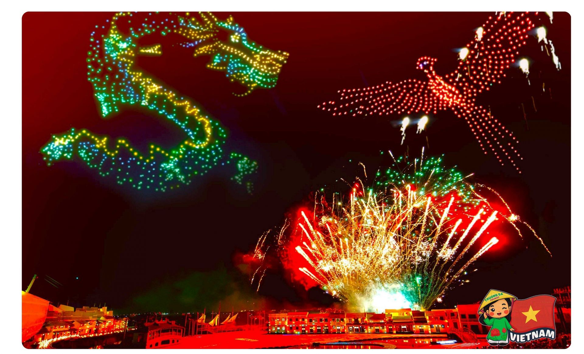 The highlight of the Light & Heritage Festival 2026 is the fusion of tradition and modern technology. For the first time in the spring sky of Hoi An, visitors will witness the Dragon–Phoenix Drone Light Show, symbols of prosperity and good fortune.