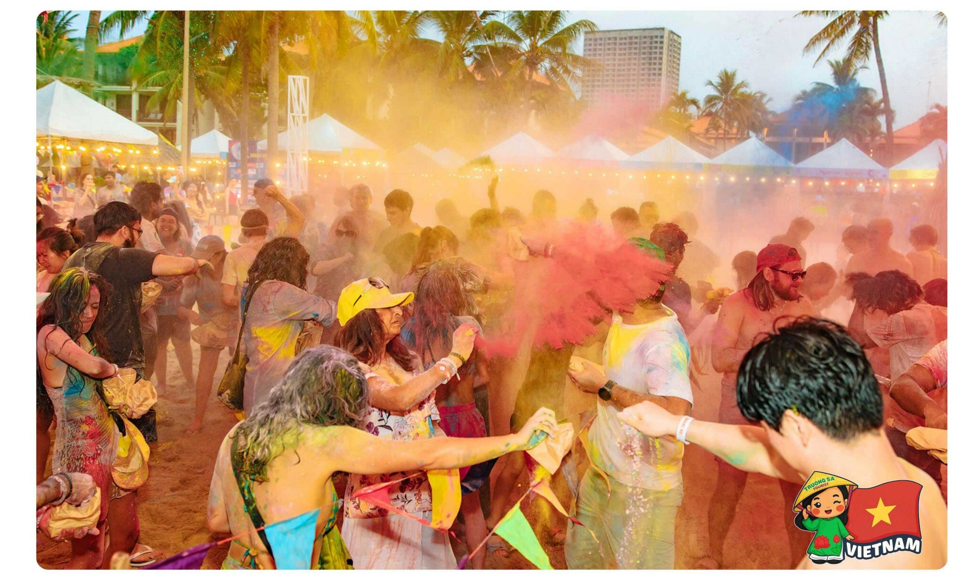 Da Nang Holi Festival carries a strong international spirit, inspired by India’s Festival of Colors. The festival space is filled with vibrant colors, electronic music, outdoor interactive activities, and an open, energetic atmosphere.