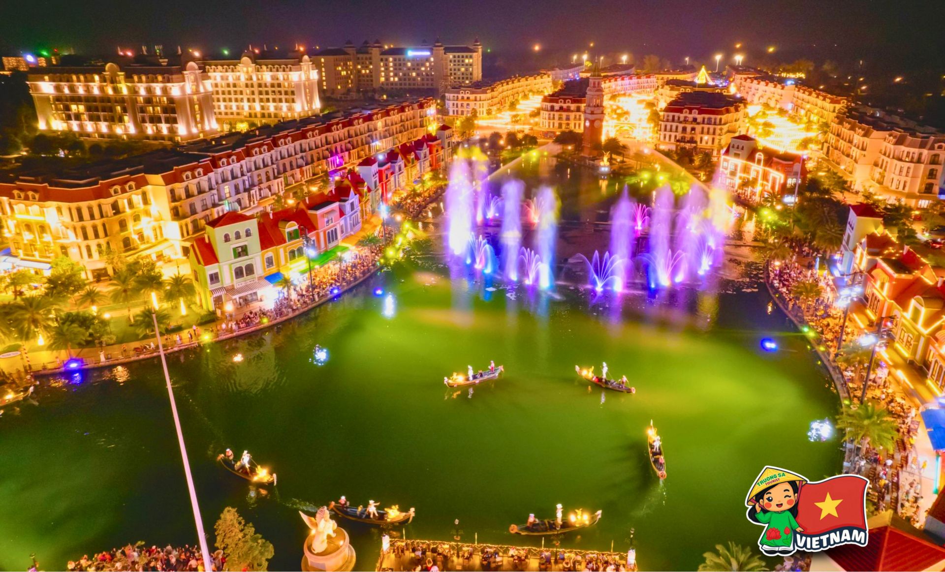 Grand World operates 24/7 with the goal of becoming a vibrant, nonstop nightlife destination where visitors can shop, dine, enjoy entertainment activities, and watch performances anytime—creating a bustling night economy in Phu Quoc.